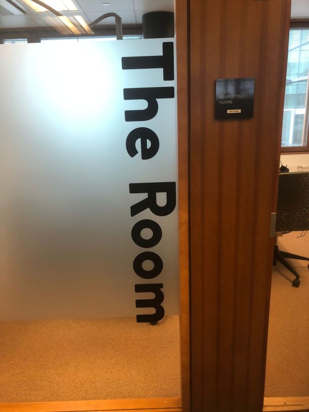 Ikkunateippi_mainosteippi_huonenumerointi_ikkunakalvo (3) 24.3.2025 1536 × 2048 Window Films in Finland – Sun Protection, Privacy and Safety Frosted film in glass wall window with room name taped on it Like Loading...